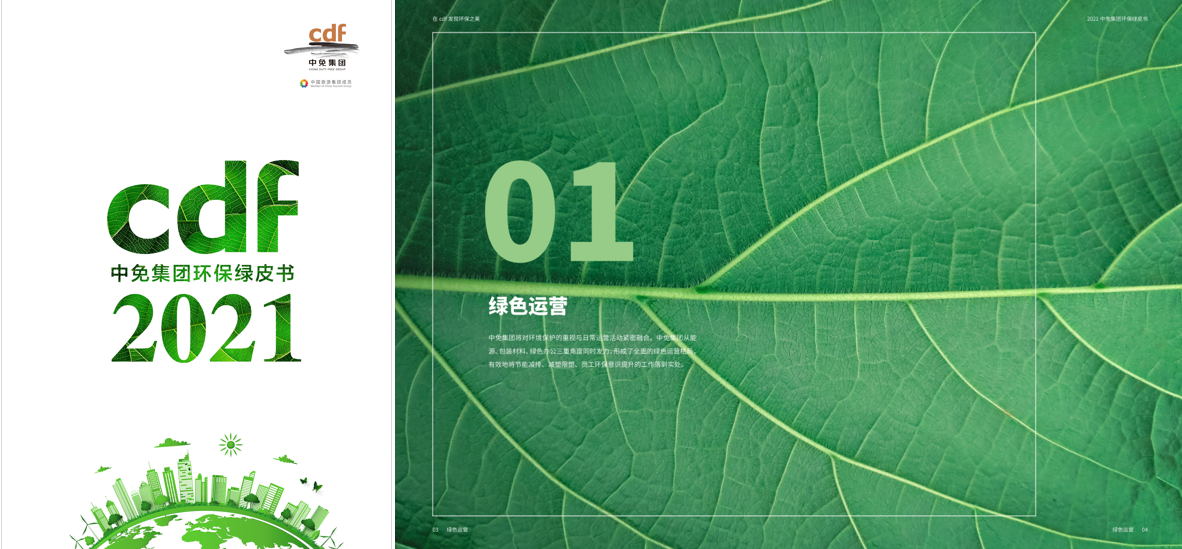 值此“碳中和”元年之際,中免集團(tuán)編制發(fā)布了以“在cdf發(fā)現(xiàn)環(huán)保之美”為主題的《2021中免集團(tuán)環(huán)保綠皮書》,系統(tǒng)地梳理、展示了中免集團(tuán)在環(huán)保、可持續(xù)發(fā)展方面所做的各項(xiàng)舉措,向社會(huì)大眾傳達(dá)“綠色中免”的環(huán)保理念。全書包含綠色運(yùn)營(yíng)、綠色建造、綠色物流與供應(yīng)鏈、綠色影響力四部分,詳細(xì)介紹了中免集團(tuán)在能源管理、包裝材料管理、辦公系統(tǒng)、建筑環(huán)保節(jié)能、智慧供應(yīng)鏈等方面的內(nèi)容?!?021中免集團(tuán)環(huán)保綠皮書》使用環(huán)保油墨、FSC認(rèn)證環(huán)保紙印刷,通過(guò)環(huán)保材質(zhì)媒介展示中免環(huán)保舉措,期待與讀者共同采取環(huán)保行動(dòng),守護(hù)美好星球的明天。