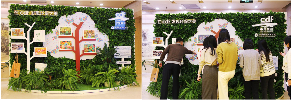 近日,在中免集團(tuán)總部及三亞國(guó)際免稅城、??谌赵聫V場(chǎng)免稅店、??诿捞m機(jī)場(chǎng)免稅店舉行了“在cdf發(fā)現(xiàn)環(huán)保之美”環(huán)?;?dòng)活動(dòng),活動(dòng)現(xiàn)場(chǎng)展示了《2021中免集團(tuán)環(huán)保綠皮書》、優(yōu)秀環(huán)保海報(bào)設(shè)計(jì)作品,并與消費(fèi)者互動(dòng)在環(huán)保樹上留下環(huán)保印記,領(lǐng)取定制環(huán)保手提袋、環(huán)保臺(tái)歷等紀(jì)念品。