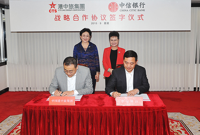 9月22日,姜巖總經(jīng)理在集團(tuán)會(huì)見了中信集團(tuán)副總經(jīng)理兼中信銀行行長(zhǎng)李慶萍一行,雙方就港中旅集團(tuán)與中信集團(tuán)及中信銀行深化合作進(jìn)行會(huì)談,幷舉行《戰(zhàn)略合作協(xié)議》簽字儀式。