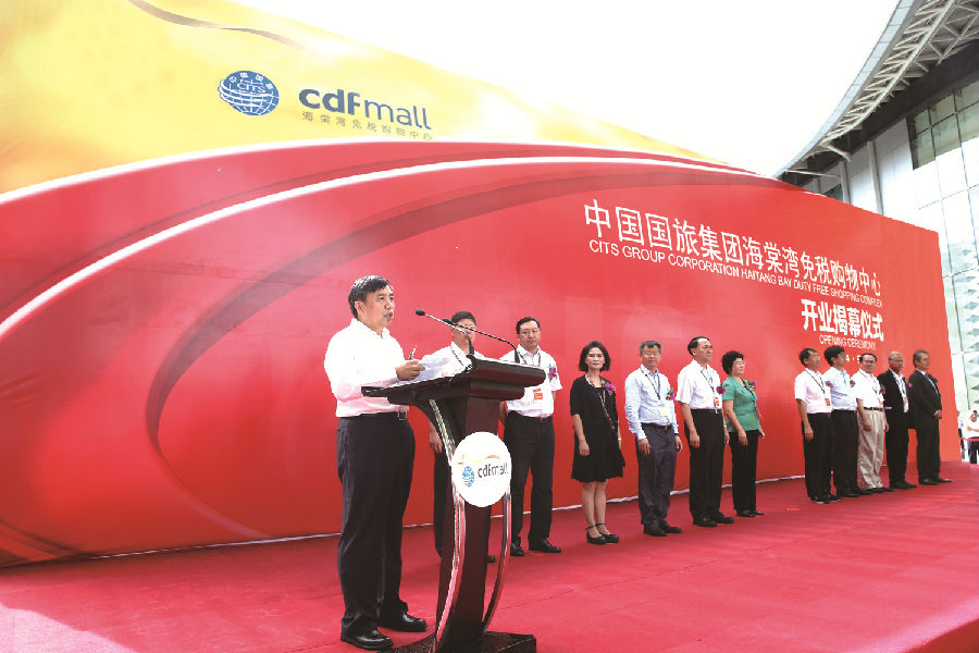 開業(yè)儀式上,王為民發(fā)表了熱情洋溢的講話。他首先代表國旅集團對各界的關心和支持表示衷心的感謝,隨后簡要介紹了國旅集團的基本情況、主要業(yè)務和今后發(fā)展方向。他回顧了海南離島免稅政策、三亞市內免稅店發(fā)展歷程。2007年,國旅集團提出“在海南開展離島免稅購物”的構想,并配合海南省委省政府爭取離島免稅政策;2011年,中免三亞免稅店作為離島免稅業(yè)務試點啟動,極短時間內便迅速成為海南省日均接待游客過萬的旅游景點之一,至今已累計接待顧客1200多萬人次?!奥糜渭用舛愘徫铩币殉蔀楹D下糜蔚男旅?。他向與會嘉賓介紹了海棠灣免稅購物中心項目的特點和優(yōu)勢,并表示項目的落成開業(yè)將極大地釋放海南離島免稅政策紅利,助力海南國際旅游島建設,也必將成為我國免稅業(yè)發(fā)展的里程碑。他說,海棠灣免稅購物中心是全球最大的免稅商業(yè)綜合體,總面積達12萬平米、集購物、休閑、娛樂、餐飲等多功能于一身,具有國際先進水準、地標性的建筑。它集合優(yōu)勢資源,招商引進了300個全球頂級時尚品牌和精心準備的超過10萬個單品;其中有的是攜手合作伙伴,打造的最新、最時尚的概念店、全球最大和亞洲最大的品牌旗艦店。國旅集團將以一流的品牌、一流的商品、一流的服務、一流的環(huán)境,為海南省、三亞市和來海南的廣大游客帶來持續(xù)不斷的驚喜和發(fā)現(xiàn)!展望未來,國旅集團將進一步堅定深耕海南旅游市場的信心和決心,通過積極整合旗下免稅、旅行社等多業(yè)務板塊資源,不斷發(fā)揮在資金、品牌資源、運營、管理等方面的優(yōu)勢,利用海棠灣免稅購物中心這個全新平臺,積極推動國際旅游島建設,為廣大游客奉獻更為豐富多彩的旅游購物體驗。他堅信,有社會各界的鼎力支持和關愛,有全體員工的智慧和奉獻,海棠灣免稅購物中心一定會拿出驕人的業(yè)績,成為國家海岸獨具魅力的亮麗風景,為海南旅游業(yè)發(fā)展做出積極的貢獻!