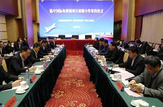 簽約儀式前,三方共同聽取了北京臨空經(jīng)濟(jì)核心區(qū)關(guān)于臨空國際免稅城項目的初步規(guī)劃情況,三家單位主要領(lǐng)導(dǎo)分別進(jìn)行了熱情洋溢的講話。