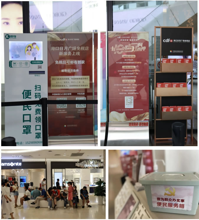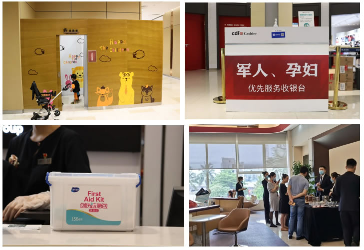 各門店結(jié)合實(shí)際情況,考慮顧客購物細(xì)節(jié),提供了多項(xiàng)貼心服務(wù):放置離島免稅政策說明牌,防疫溫馨提示牌、店面各品牌中英文導(dǎo)購圖,方便顧客了解相關(guān)信息;人流密集區(qū)域加裝空調(diào),調(diào)節(jié)舒適溫度;放置6套沙發(fā)、14條長椅,配備客用飲水機(jī)和紙杯,方便顧客休息;提供女性用品、行李寄存、貴重物品遺失招領(lǐng)、嬰兒車服務(wù)和傘套機(jī)服務(wù),加強(qiáng)細(xì)節(jié)服務(wù);增加25部移動(dòng)POS機(jī),節(jié)省顧客排隊(duì)等候時(shí)間;門店出入口安裝人體熱成像測(cè)溫儀,提高防疫體溫檢測(cè)效率;配備口罩、手消液和醫(yī)用濕紙巾等防疫物資,方便顧客做好個(gè)人防護(hù);設(shè)置客服專線,確保在1小時(shí)內(nèi)給予顧客答復(fù)。