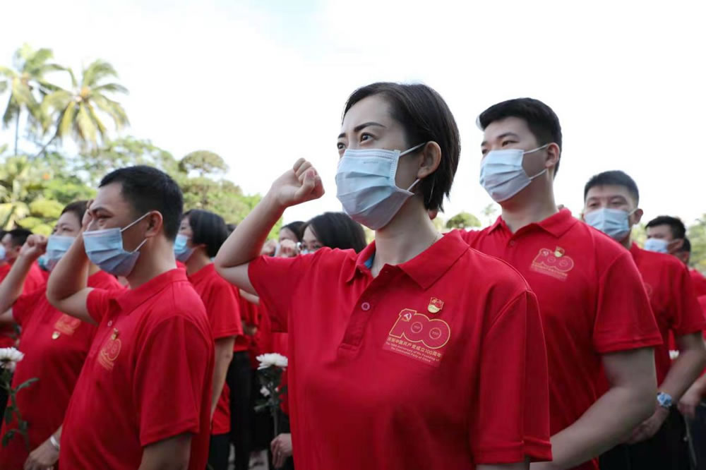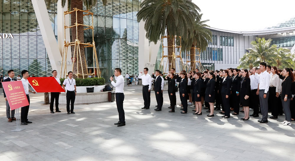 三亞店黨委組織全體黨員進行莊嚴(yán)的宣誓活動。一句句鏗鏘有力、擲地有聲的錚錚誓言響徹免稅店上空,是為中國共產(chǎn)黨成立100周年獻禮,更是對黨、對人民的鄭重承諾。