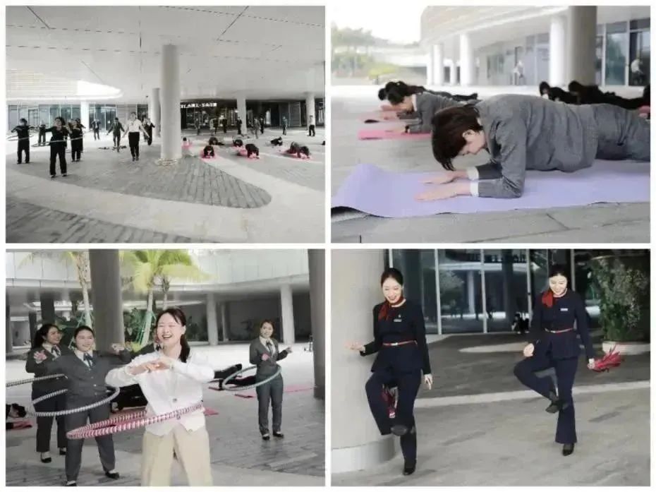 3月6日、7日,以"運(yùn)動燃激情 活力迎三八"為主題,于免稅店下沉廣場開展"三八節(jié)"趣味健身活動,活動包含一分鐘跳繩、一分鐘呼啦圈、一分鐘踢毽子、仰臥起坐、平板支撐五個"挑戰(zhàn)"項(xiàng)目,共計1400余名女職工到場參與。精神煥發(fā)的女職工們身姿矯健,臉上洋溢著快樂自信的笑容,在三月的春風(fēng)中共同跳出青春的節(jié)奏……