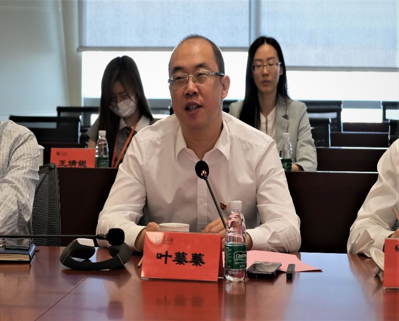 參觀結(jié)束后,雙方進(jìn)行了座談交流。人民網(wǎng)黨委書記、董事長(zhǎng)、總裁葉蓁蓁首先介紹了人民網(wǎng)的主責(zé)業(yè)務(wù)。他說,人民網(wǎng)始終履行黨網(wǎng)職責(zé),積極落實(shí)習(xí)總書記關(guān)于推動(dòng)媒體融合發(fā)展提出的全程、全息、全員、全效的“四全”媒體論述。近年來,人民網(wǎng)一直是媒體融合、轉(zhuǎn)型發(fā)展的引領(lǐng)者。人民網(wǎng)深研內(nèi)容科技,聚焦一個(gè)內(nèi)容主業(yè),在內(nèi)容原創(chuàng)、內(nèi)容運(yùn)營、內(nèi)容風(fēng)控、內(nèi)容聚合分發(fā)四個(gè)內(nèi)容業(yè)務(wù)上全面發(fā)力,在內(nèi)容產(chǎn)業(yè)新的社會(huì)化分工的關(guān)鍵“生態(tài)位”發(fā)揮了引領(lǐng)、連接、標(biāo)準(zhǔn)制定等關(guān)鍵作用,探索實(shí)現(xiàn)從“黨管媒體”走向“黨管數(shù)據(jù)”,不斷鞏固中央重點(diǎn)新聞網(wǎng)站“龍頭”地位,逐步發(fā)展成為內(nèi)容科技領(lǐng)軍企業(yè)。