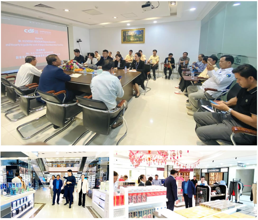 2024年為“中柬人文交流年”,為了深化中柬文化、旅游、服務(wù)等方面交流合作,近日,柬埔寨暹粒省副省長NGOUV SENGKAK,以及來自暹粒省旅游局、中文導(dǎo)游協(xié)會(huì)、中國地接社、越南地接社、泰國地接社等組織機(jī)構(gòu)的22位旅游業(yè)代表來到中國免稅品集團(tuán)(柬埔寨)有限公司(以下簡稱:柬中免)吳哥市內(nèi)免稅店考察,并順利舉行“暹粒旅游行業(yè)發(fā)展座談會(huì)”,就目前暹粒旅游行業(yè)現(xiàn)狀與未來發(fā)展以及區(qū)域旅游合作等問題進(jìn)行了深入討論。